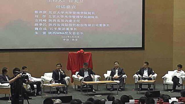 全國政協(xié)副主席韓啟德出席并致辭,省長婁勤儉,北京大學(xué)校長王恩哥,省委常委、西安市委書記魏民洲,光華管理學(xué)院院長蔡洪濱為分院揭牌。石羊集團(tuán)董事長魏存成出席此次活動并作為特邀對話嘉賓與北大光華學(xué)院院長蔡洪濱、北大光華學(xué)院副院長劉學(xué)、陜西省發(fā)改委主任方瑋峰等教授和專家進(jìn)行“新絲路,新起點(diǎn)”西部發(fā)展論壇,參加高峰對話。光華管理學(xué)院黨委書記冒大衛(wèi)博士擔(dān)任圓桌論壇主持人。石羊集團(tuán)董事長魏存成十幾年間六度在北大光華學(xué)習(xí),他以企業(yè)家的角度,講述了絲綢之路經(jīng)濟(jì)帶建設(shè)中,如何提升企業(yè)實(shí)力,并總結(jié)北大的學(xué)習(xí)助他驗(yàn)證過去、修正未來。