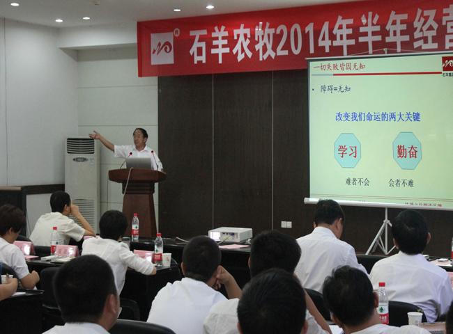 7月3日,石羊集團農(nóng)牧產(chǎn)業(yè)2014年上半年經(jīng)營檢討會在臨潼隆重召開。集團總裁常青山、集團副總裁兼農(nóng)牧公司總經(jīng)理韓春元出席會議,各事業(yè)部總經(jīng)理、各線路負責人、各子分公司副總經(jīng)理以上人員及財務(wù)線路近百人參加會議。