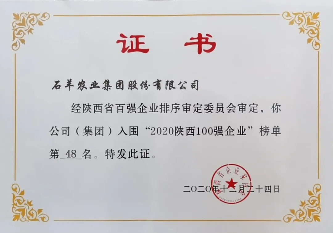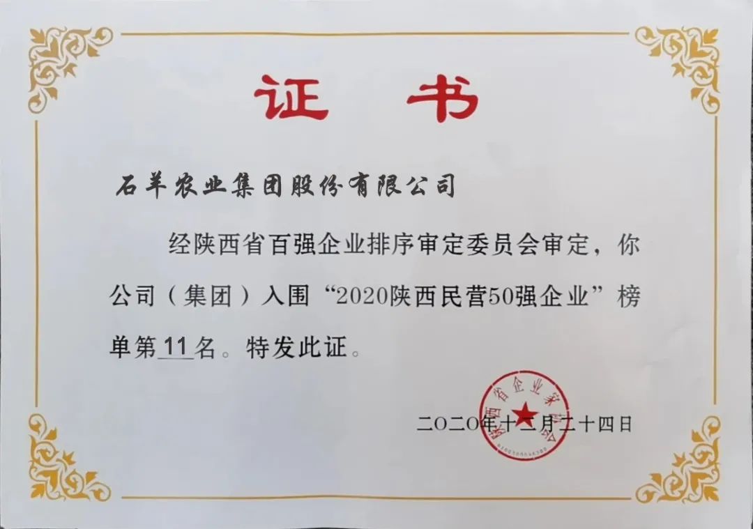 石羊集團(tuán)榮膺2020年“陜西百強企業(yè)”、“陜西民營50強企業(yè)”稱號,分別排名48位和11位,集團(tuán)營業(yè)收入持續(xù)增長。