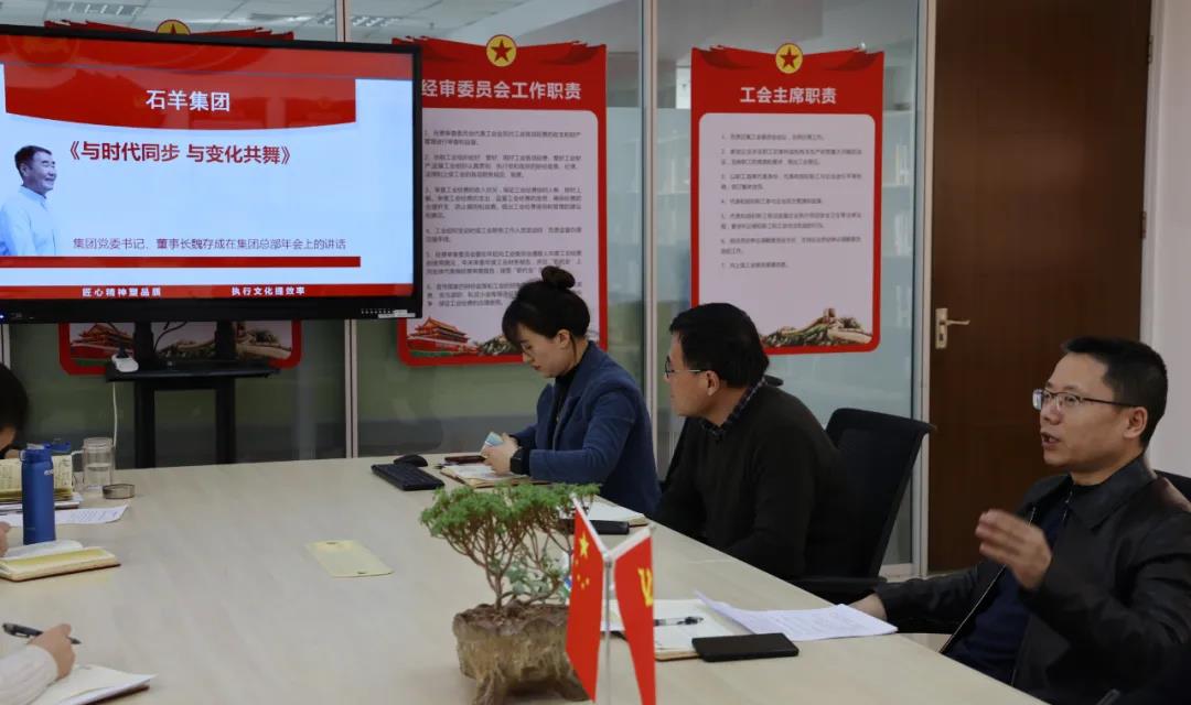集團(tuán)工會(huì)主席、財(cái)務(wù)總監(jiān)段鵬博帶領(lǐng)全體參會(huì)人員認(rèn)真學(xué)習(xí)貫徹集團(tuán)黨委書(shū)記、董事長(zhǎng)魏存成在集團(tuán)總部年會(huì)上《與時(shí)代同步 與變化共舞》的重要講話,落實(shí)魏總對(duì)全體石羊人要做到學(xué)習(xí)、自律和信任的三個(gè)要求。石羊人要有歸零心態(tài),樹(shù)立標(biāo)桿,對(duì)標(biāo)自己,提升自己,今后就是學(xué)習(xí)者淘汰不學(xué)習(xí)者,創(chuàng)新者淘汰不創(chuàng)新者的時(shí)代。