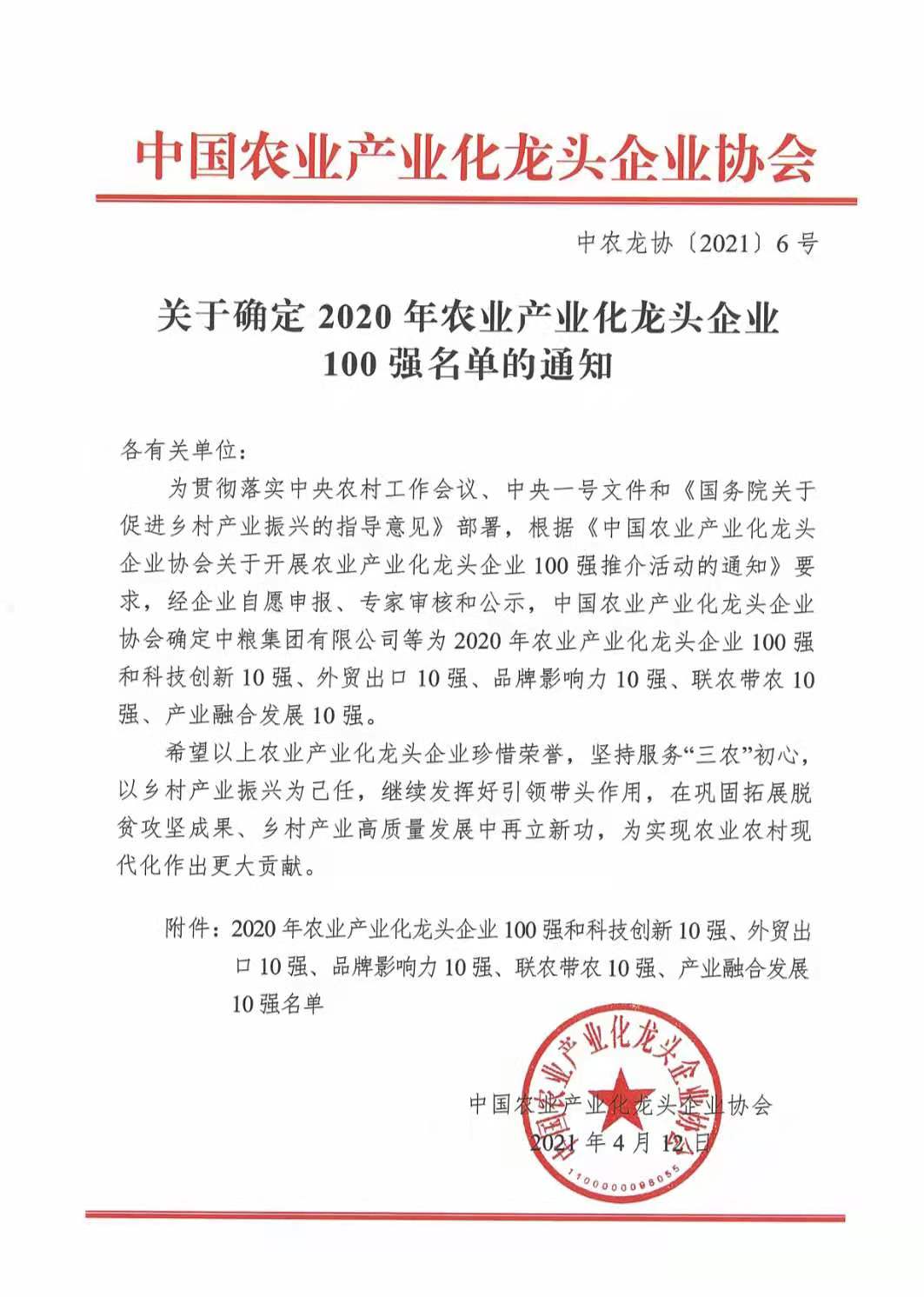 4月25日,2020年農業(yè)產業(yè)化龍頭企業(yè)百強推介暨百強國龍進貴州活動舉行。活動公布了2020年農業(yè)產業(yè)化龍頭企業(yè)100強名單。石羊集團獲評2020年農業(yè)產業(yè)化龍頭企業(yè)100強,榮列百強榜單第75位。