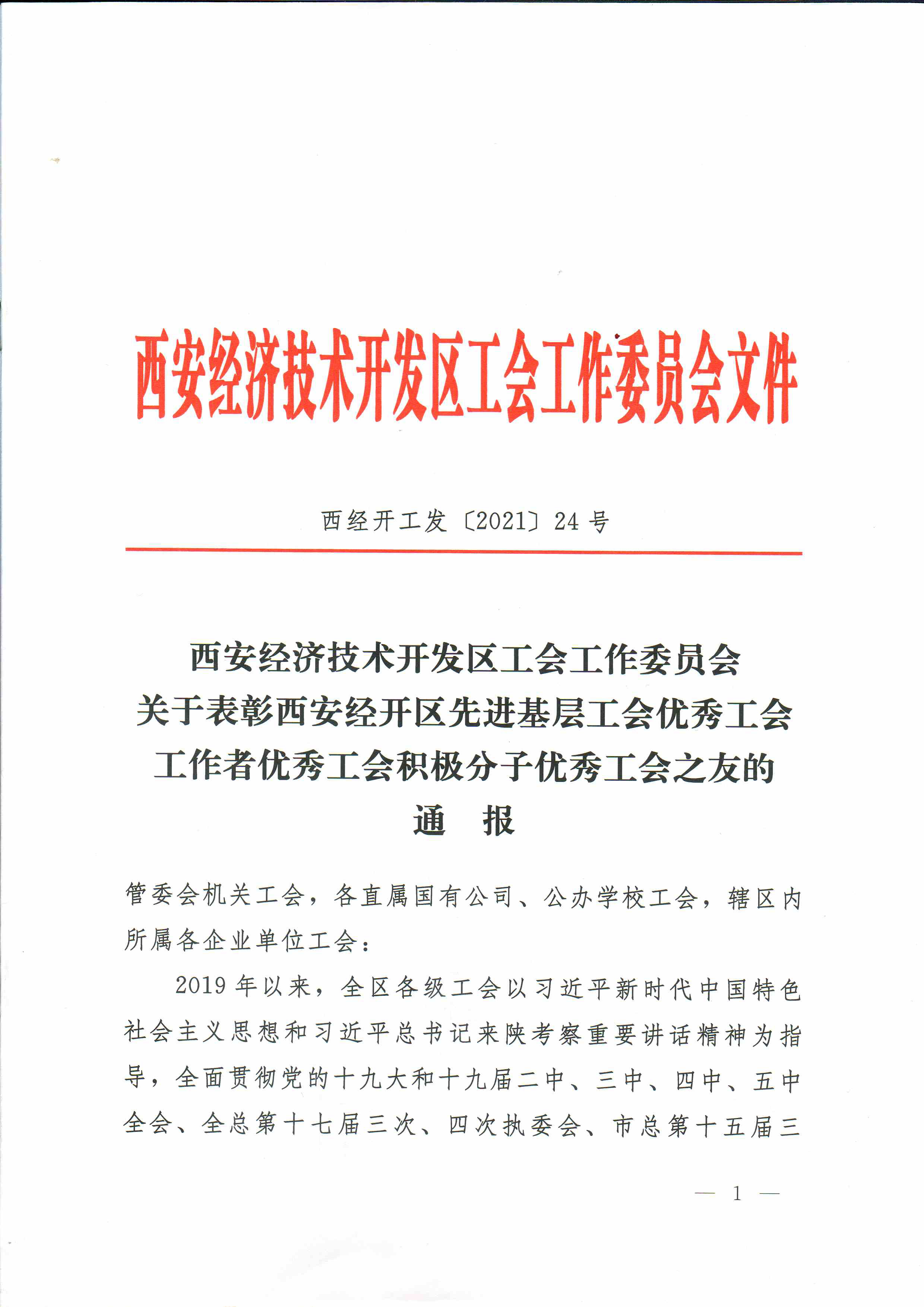4月30日,西安經(jīng)開區(qū)工會工委授予石羊集團工會2019-2020年度先進基層工會榮譽稱號。