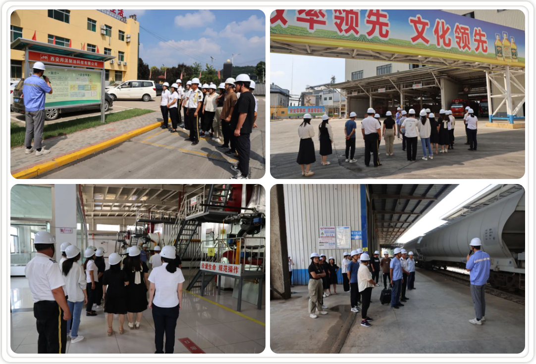 石羊愛心助學(xué)金發(fā)放儀式前,大家首先參觀了邦淇工廠,觀看集團(tuán)宣傳片,觀摩學(xué)習(xí)了食用油、豆粕等加工生產(chǎn)過程。