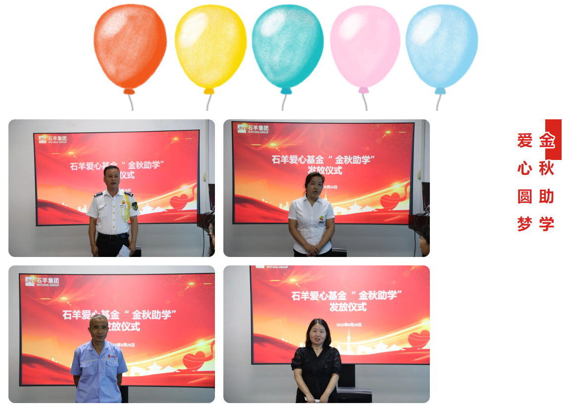 8月28日,一年一度的石羊集團(tuán)黨委愛心基金“金秋助學(xué) 愛心圓夢”活動在西安邦淇工廠如期舉行。本年度共為23名困難員工子女及上下游困難客戶子女發(fā)放9.5萬元愛心助學(xué)金,助力學(xué)子圓夢大學(xué)。