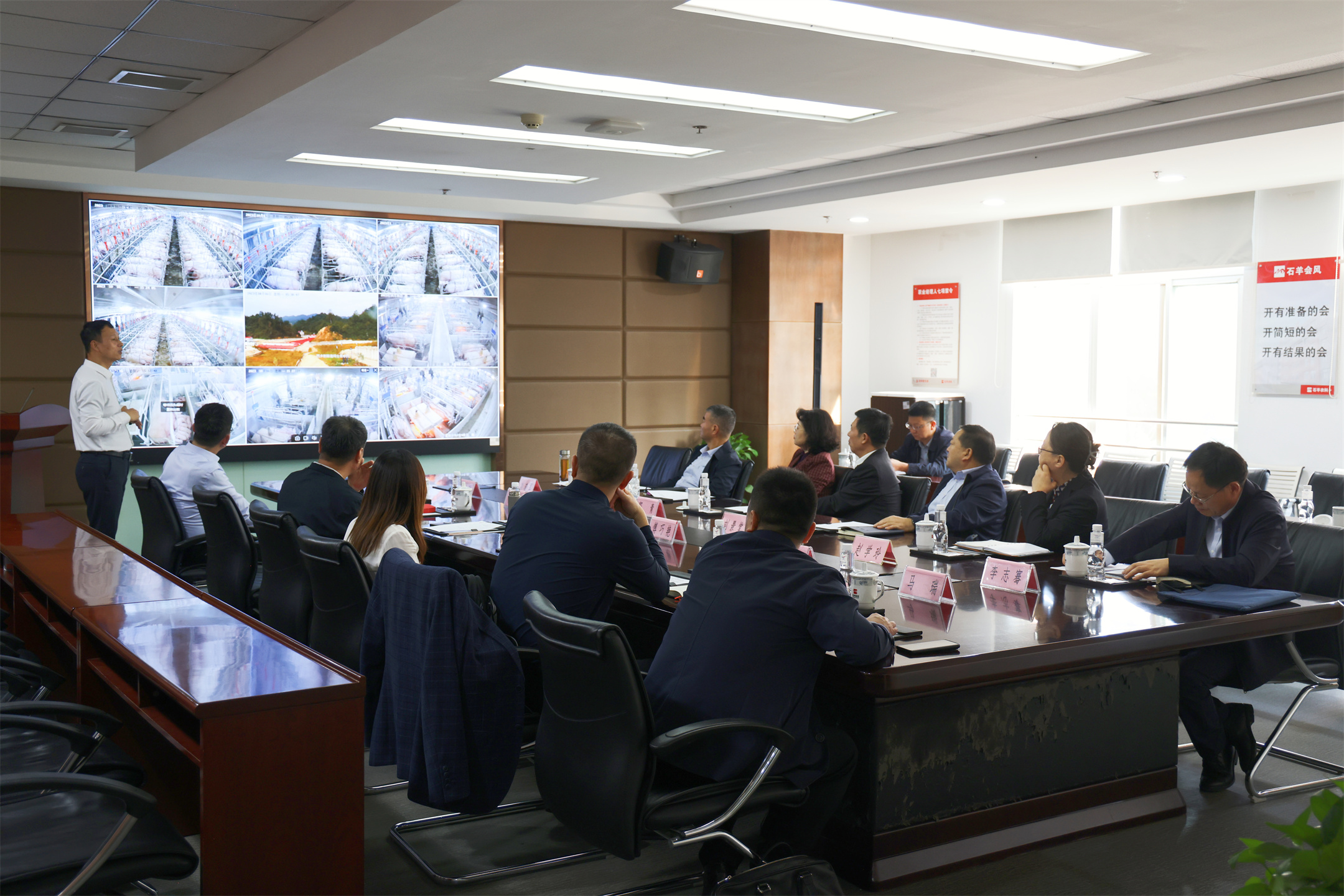 郭青一行先后在石羊食品產(chǎn)業(yè)園,了解入駐食品企業(yè)的生產(chǎn)經(jīng)營情況;在石羊集團文化展廳,詳細(xì)了解了石羊集團發(fā)展歷程及各產(chǎn)業(yè)發(fā)展現(xiàn)狀;通過云端遠程監(jiān)控查看養(yǎng)殖場實時畫面,了解自動化養(yǎng)殖流程及生產(chǎn)過程。參觀結(jié)束后舉行座談。
