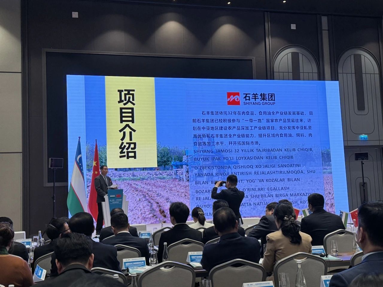 4月28日,由陜西省政府、烏茲別克斯坦投資工業(yè)與貿(mào)易部主辦的中國(guó)(陜西)—烏茲別克斯坦經(jīng)貿(mào)洽談會(huì)在塔什干舉辦。陜西省長(zhǎng)趙剛,烏茲別克斯坦副總理扎姆希德·霍賈耶夫,中國(guó)駐烏茲別克斯坦大使于駿出席并致辭。石羊集團(tuán)作為代表企業(yè)參會(huì),集團(tuán)黨委書(shū)記、董事長(zhǎng)魏存成對(duì)擬投資項(xiàng)目重點(diǎn)推介。